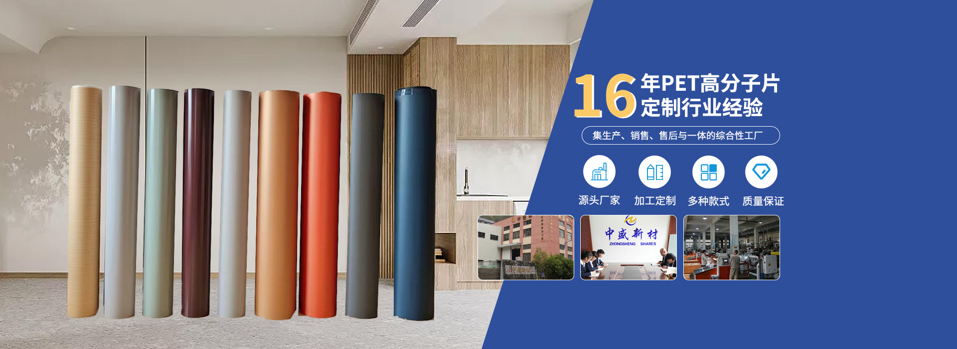 浙江中盛新材料股份有限公司成立于2006年,擁有2家全資、控股子公司。合計(jì)注冊(cè)資金7511萬(wàn)元,標(biāo)準(zhǔn)廠(chǎng)房面積40000㎡,年產(chǎn)能7萬(wàn)噸PET、PETG、高分子片材及熱成型吸塑包裝制品。 公司專(zhuān)注PET高分子片行業(yè)15年,沉淀了成熟的經(jīng)驗(yàn)、技能、管理以及客戶(hù)資源。公司經(jīng)過(guò)15年的發(fā)展,PET高分子片材行業(yè)排名第一,擁有較強(qiáng)的核心競(jìng)爭(zhēng)力,擁有發(fā)明和實(shí)用專(zhuān)利66項(xiàng),為國(guó)家高新技術(shù)企業(yè)、省發(fā)明協(xié)會(huì)常務(wù)理事單位、浙江省綠色企...